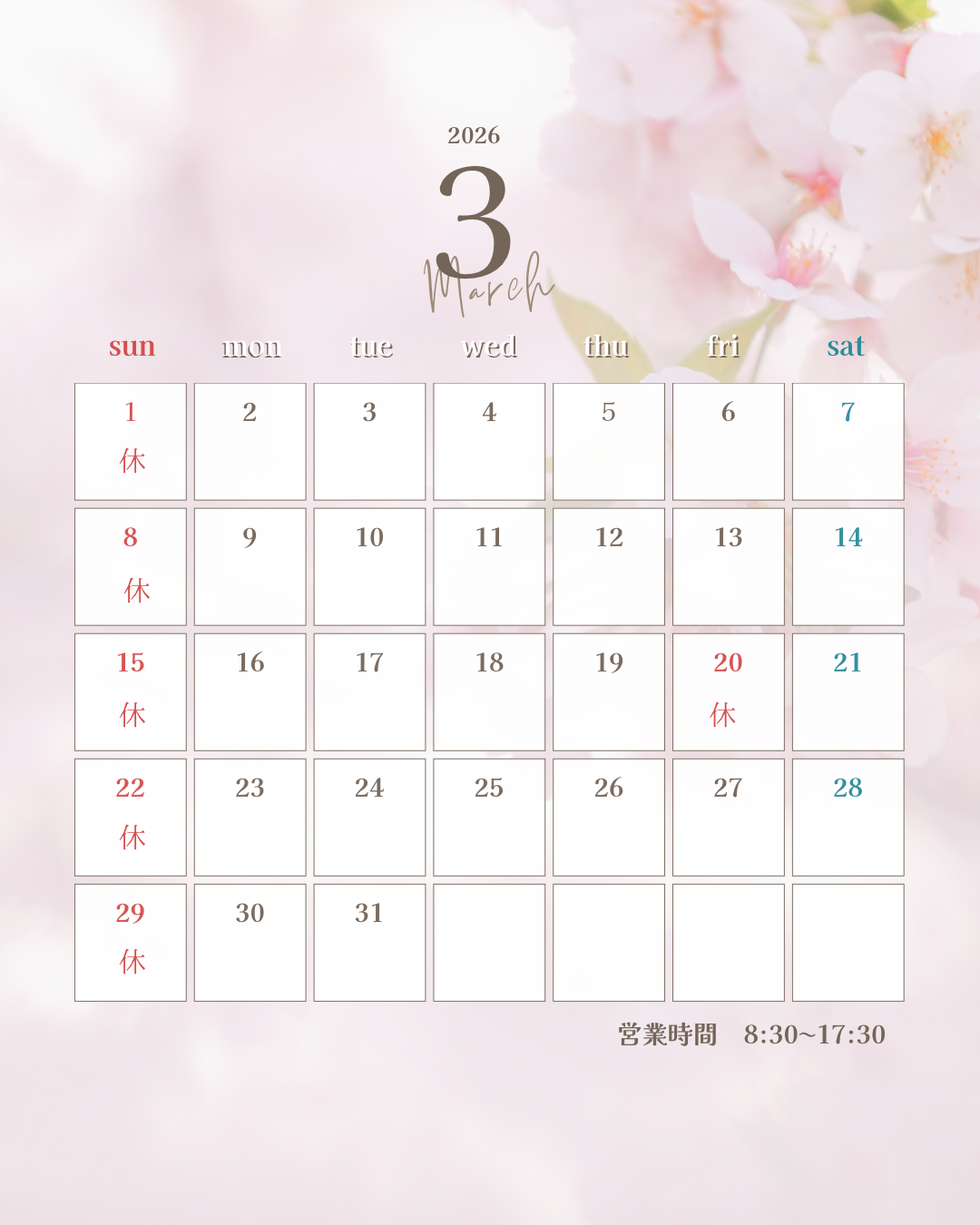 3月の営業日